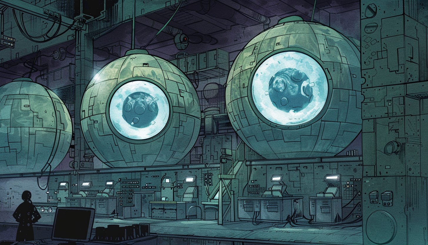 The concrete chamber contained three spheroid capsules placed on mechanical pedastals affixed into the ground. I say capsules because I didn’t know how else to describe them. Pods maybe. Either way, they were big enough to fit several grown men at least. They were covered in bizarre devices and blinking lights that again made no sense to me. The other four men worked on the leftmost sphere, inputting commands into an interface and monitoring the pod.